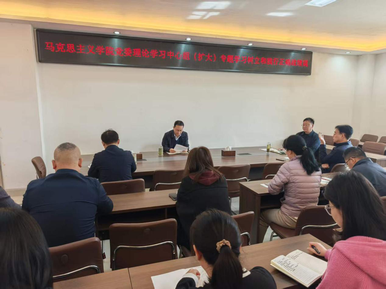 党委在社科楼323会议室召开理论学习中心组(扩大)专题学习会。学院领导班子成员,全体党支部书记、教研室主任参加学习,院长唐国战主持会议。