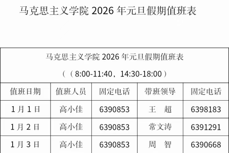 AG博彩(中国)唯一官方网站 2026年元旦假期值班表