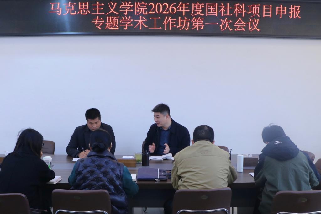 在社科楼323会议室召开2026年度国家社科基金项目申报专题学术工作坊(中共党史党建学)第一次会议。本次会议由学术工作坊发起人刘华超主持,副院长常文涛及五位申报该方向课题的教师参加。