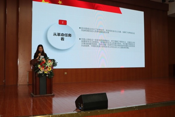 经过选手的不懈努力和激烈角逐,共有六名选手入围决赛。本次比赛共分为两个环节,第一个环节为时政沙龙,该环节采取透明公正原则,题目紧密围绕建国七十周年和习近平治国理论展开。各位选手沉着冷静、发挥出色,在激烈的问答环节后,各位选手的分数差距逐渐拉开。接着,进入第二个环节听我说说,各位选手准备充分,他们思路清晰、激情澎湃的演讲引得观众掌声激烈,将比赛推至了高潮。比赛中穿插着歌曲、小品、互动问答等环节,充分调动了观众积极性,现场掌声不断,气氛高涨。最终选手吴智媛表现突出,荣获本次比赛一等奖。