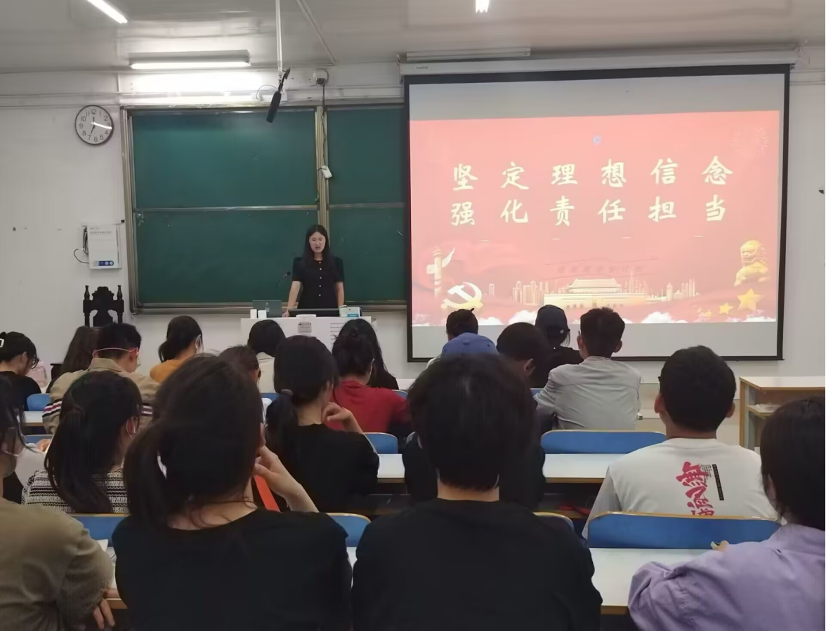 团课伊始,武文雪以党的二十大为切入点剖析青年对党和国家事业以及前途的重要性,讲述了党的二十大中习近平总书记对青年的高度肯定和殷切期望。接下来,武文雪从 “以理想为帆,不惧远航”、“ 以奋斗为浆,不畏风浪”、“以创新为刃,划破茧壳”三个方面出发,用“国民才女武亦姝”、“考古女孩钟芳蓉”等具体事例阐述了新时代好青年应有的责任与担当;同时插入富有趣味的知识问答环节,过程中同学们认真思考、积极互动。最后,武文雪进行团课总结,号召社团成员深入学习党的二十大精神,呼吁大家将党的二十大精神内化于心、外化于行,在新征程当好开路先锋、事业闯将,创造“强国圆梦、功成有我”的青春佳话。