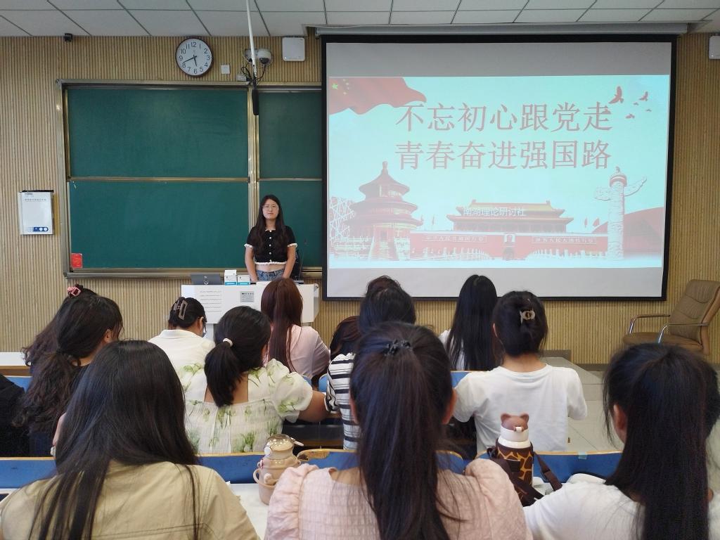 为深入学习领悟习近平总书记提出的伟大建党精神,引导学生增强爱党爱国意识,凝聚青年奋进力量,南湖理论研讨社于9月17日晚在社科楼515教室举办“践行初心,担当使命”主题团课。团课由团支书武文雪主持,南湖理论研讨社、豫南明珠环境保护协会、考研服务社社团成员共同参加。