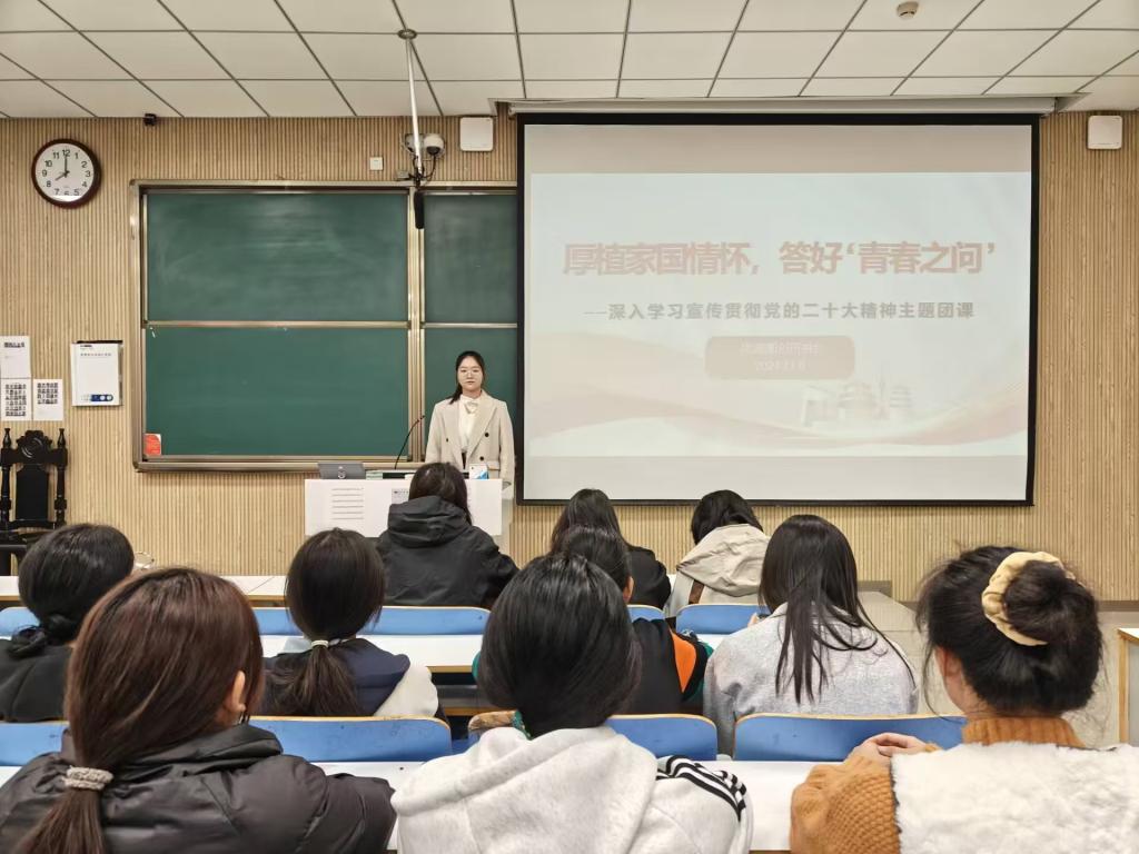 团课伊始,范茜茜以李大钊在《青春》一文中发出的“青春之问”为切入点,探讨青年与时代的关系和个人发展路径。同学们共同讨论如何将理论观点转化为推动社会发展的实际行动,为时代和民族的发展贡献力量。接着,范茜茜指出,党的二十大的顺利召开,为我们指明了前进的方向,提供了行动的蓝图,作为AG博彩(中国)唯一官方网站 的青年学子,我们更应该深刻理解和领会二十大精神,将其内化为我们的行动指南,外化为实际行动。最后,范茜茜强调,我们要以青春之姿答好“青春之问”、注重品德修养、加强自我管理,在奋斗中实现青春价值。